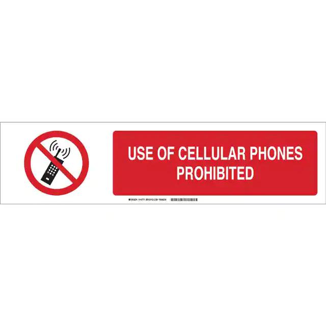 This is manufactured by Brady Corporation. The manufacturer part number is 140771. Label with a size of 23.88" l x 6.00" w (606.4mm x 152.4mm). The product is rohs3 compliant. It is assigned with possible HTSUS value of 3926.90.9985. It is shipped in bulk. It has a classic black and red legend, white background colour. The product brady®, is a highly preferred choice for users. The product is made from highly stable and reliable polyester. In addition, it is reach unaffected. Its typical moisture sensitivity level is not applicable. A bespoke label is a use of cellular phones prohibited label. The product is suitable for use with notice. It has a long 4 weeks standard lead time. The product is designated with the ear99 code number