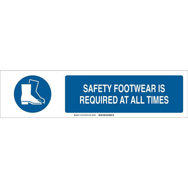 This is manufactured by Brady Corporation. The manufacturer part number is 140780. Label with a size of 23.88" l x 6.00" w (606.4mm x 152.4mm). The product is rohs3 compliant. It is assigned with possible HTSUS value of 3926.90.9985. It is shipped in bulk. It has a classic blue legend, white background colour. The product brady®, is a highly preferred choice for users. The product is made from highly stable and reliable polyester. In addition, it is reach unaffected. Its typical moisture sensitivity level is not applicable. A bespoke label is a safety footwear is required at all times label. It has a long 4 weeks standard lead time. The product is designated with the ear99 code number
