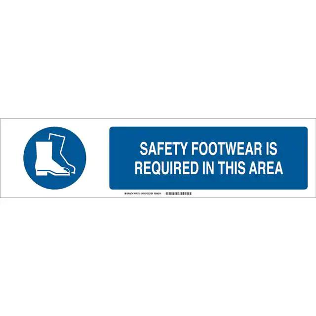 This is manufactured by Brady Corporation. The manufacturer part number is 140781. Label with a size of 23.88" l x 6.00" w (606.4mm x 152.4mm). The product is rohs3 compliant. It is assigned with possible HTSUS value of 3926.90.9985. It is shipped in bulk. It has a classic blue legend, white background colour. The product brady®, is a highly preferred choice for users. The product is made from highly stable and reliable polyester. In addition, it is reach unaffected. Its typical moisture sensitivity level is not applicable. A bespoke label is a safety footwear is required in this area label. It has a long 4 weeks standard lead time. The product is designated with the ear99 code number