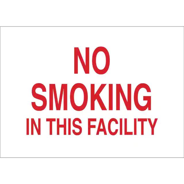 This is manufactured by Brady Corporation. The manufacturer part number is 141954. Label with a size of 10.00" l x 7.00" w (254.0mm x 177.8mm). The product is rohs3 compliant. It is assigned with possible HTSUS value of 3926.90.9985. It is shipped in bulk. It has a classic red legend, white background colour. The product brady®, is a highly preferred choice for users. The product is made from highly stable and reliable fiberglass. In addition, it is reach unaffected. Its typical moisture sensitivity level is not applicable. A bespoke label is a no smoking in this facility label. The product is suitable for use with warning. It has a long 4 weeks standard lead time. The product is designated with the ear99 code number