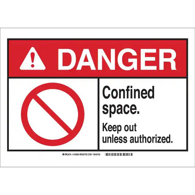 This is manufactured by Brady Corporation. The manufacturer part number is 143683. Label with a size of 10.00" l x 7.00" w (254.0mm x 177.8mm). The product is rohs3 compliant. It is assigned with possible HTSUS value of 3926.90.9985. It is shipped in bulk. It has a classic black and red legend, white background colour. The product brady®, is a highly preferred choice for users. The product is made from highly stable and reliable polyester. In addition, it is reach unaffected. Its typical moisture sensitivity level is not applicable. A bespoke label is a danger. confined space. keep out unless authorized label. The product is suitable for use with danger. It has a long 4 weeks standard lead time. The product is designated with the ear99 code number