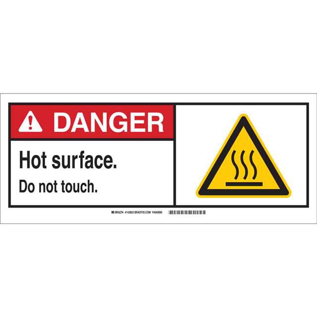 This is manufactured by Brady Corporation. The manufacturer part number is 143852. Label with a size of 17.00" l x 7.00" w (431.8mm x 177.8mm). The product is rohs3 compliant. It is assigned with possible HTSUS value of 3926.90.9985. It is shipped in bulk. It has a classic black, red and yellow legend, white background colour. The product brady®, is a highly preferred choice for users. The product is made from highly stable and reliable fiberglass. In addition, it is reach unaffected. Its typical moisture sensitivity level is not applicable. A bespoke label is a danger. hot surface do not touch label. The product is suitable for use with warning. It has a long 4 weeks standard lead time. The product is designated with the ear99 code number