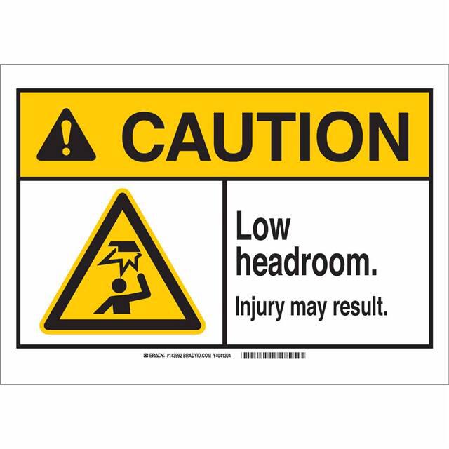This is manufactured by Brady Corporation. The manufacturer part number is 143989. Label with a size of 10.00" l x 7.00" w (254.0mm x 177.8mm). The product is rohs3 compliant. It is assigned with possible HTSUS value of 3926.90.9985. It is shipped in bulk. It has a classic black and yellow legend, white background colour. The product brady®, is a highly preferred choice for users. The product is made from highly stable and reliable polyester. In addition, it is reach unaffected. Its typical moisture sensitivity level is not applicable. A bespoke label is a caution. low headroom injury may result label. The product is suitable for use with caution. It has a long 4 weeks standard lead time. The product is designated with the ear99 code number