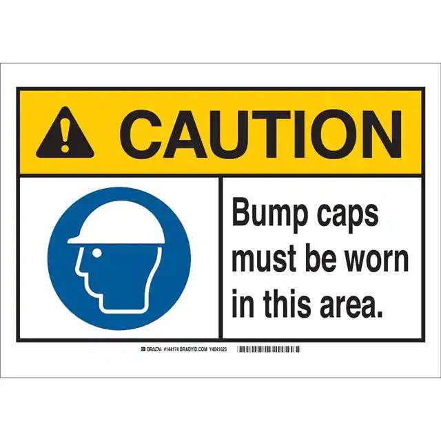 This is manufactured by Brady Corporation. The manufacturer part number is 144175. Label with a size of 10.00" l x 7.00" w (254.0mm x 177.8mm). The product is rohs3 compliant. It is assigned with possible HTSUS value of 8310.00.0000. It is shipped in bulk. It has a classic black, blue and yellow legend, white background colour. The product brady®, is a highly preferred choice for users. The product is made from highly stable and reliable aluminum. In addition, it is reach unaffected. Its typical moisture sensitivity level is not applicable. A bespoke label is a caution. bump caps must be worn in this area label. The product is suitable for use with caution. It has a long 4 weeks standard lead time. The product is designated with the ear99 code number