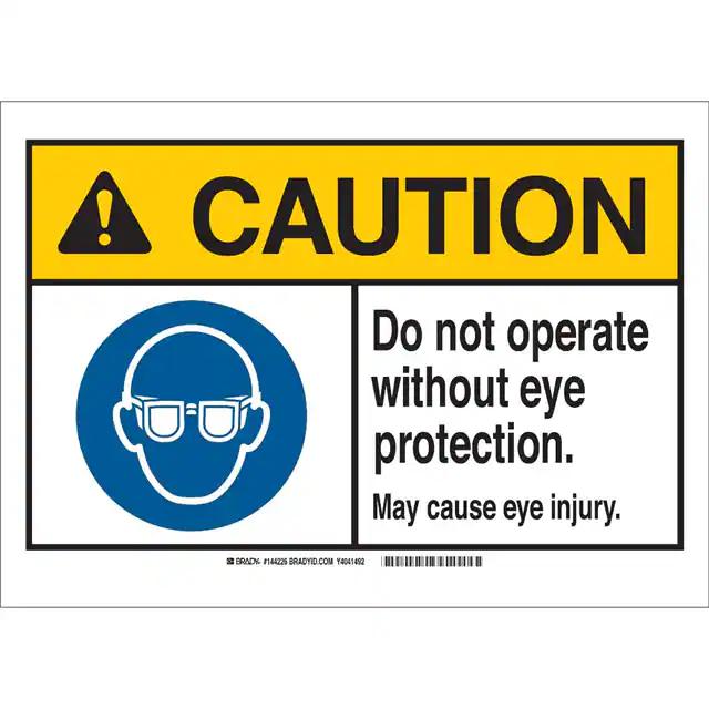 This is manufactured by Brady Corporation. The manufacturer part number is 144221. Label with a size of 10.00" l x 7.00" w (254.0mm x 177.8mm). The product is rohs3 compliant. It is assigned with possible HTSUS value of 3926.90.9985. It is shipped in bulk. It has a classic black, blue and yellow legend, white background colour. The product brady®, is a highly preferred choice for users. The product is made from highly stable and reliable fiberglass. In addition, it is reach unaffected. Its typical moisture sensitivity level is not applicable. A bespoke label is a caution. do not operate without eye protection. may cause eye injury label. The product is suitable for use with warning. It has a long 4 weeks standard lead time. The product is designated with the ear99 code number