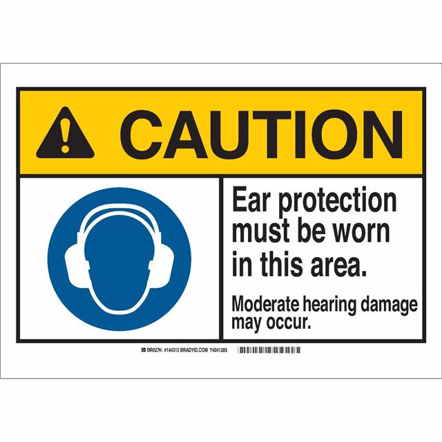 This is manufactured by Brady Corporation. The manufacturer part number is 144312. Label with a size of 10.00" l x 7.00" w (254.0mm x 177.8mm). The product is rohs3 compliant. It is assigned with possible HTSUS value of 3926.90.9985. It is shipped in bulk. It has a classic black, blue and yellow legend, white background colour. The product brady®, is a highly preferred choice for users. The product is made from highly stable and reliable polyester. In addition, it is reach unaffected. Its typical moisture sensitivity level is not applicable. A bespoke label is a caution. do not enter without wearing ear protection.severe hearing damage will result label. The product is suitable for use with caution. It has a long 4 weeks standard lead time. The product is designated with the ear99 code number