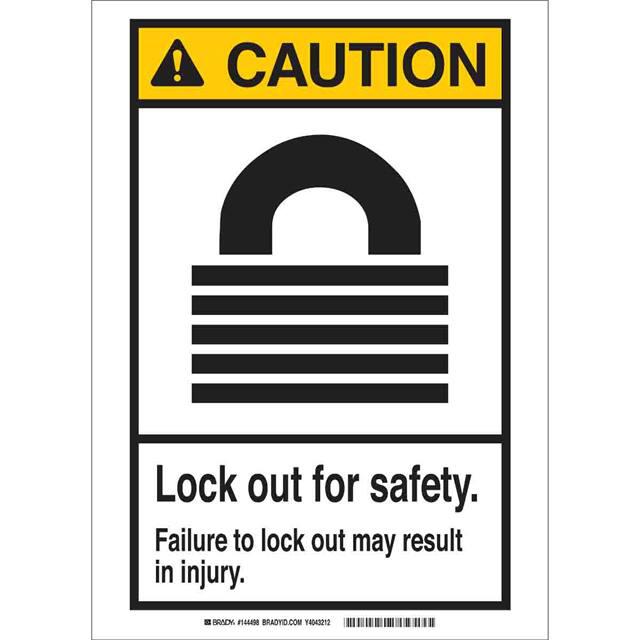 This is manufactured by Brady Corporation. The manufacturer part number is 144499. Label with a size of 10.00" l x 7.00" w (254.0mm x 177.8mm). The product is rohs3 compliant. It is assigned with possible HTSUS value of 3926.90.9985. It is shipped in bulk. It has a classic black and yellow legend, white background colour. The product brady®, is a highly preferred choice for users. The product is made from highly stable and reliable polyester. In addition, it is reach unaffected. Its typical moisture sensitivity level is not applicable. A bespoke label is a lock out for safety. failure to lock out may result in injury label. The product is suitable for use with lock out. It has a long 4 weeks standard lead time. The product is designated with the ear99 code number