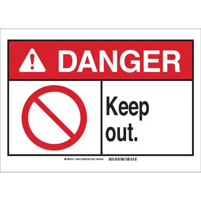 This is manufactured by Brady Corporation. The manufacturer part number is 144675. Label with a size of 10.00" l x 7.00" w (254.0mm x 177.8mm). The product is rohs3 compliant. It is assigned with possible HTSUS value of 3926.90.9985. It is shipped in bulk. It has a classic black and red legend, white background colour. The product brady®, is a highly preferred choice for users. The product is made from highly stable and reliable polyester. In addition, it is reach unaffected. Its typical moisture sensitivity level is not applicable. A bespoke label is a danger. keep out label. The product is suitable for use with warning. It has a long 4 weeks standard lead time. The product is designated with the ear99 code number