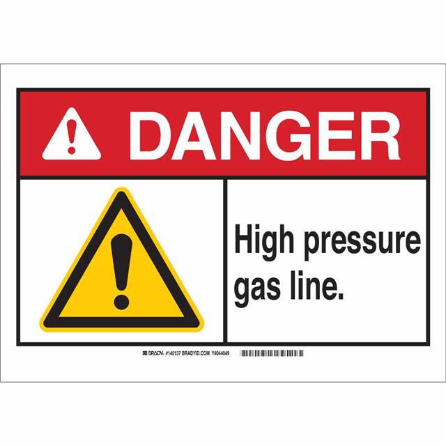 This is manufactured by Brady Corporation. The manufacturer part number is 145138. Label with a size of 10.00" l x 7.00" w (254.0mm x 177.8mm). The product is rohs3 compliant. It is assigned with possible HTSUS value of 3926.90.9985. It is shipped in bulk. It has a classic black, red and yellow legend, white background colour. The product brady®, is a highly preferred choice for users. The product is made from highly stable and reliable polyester. In addition, it is reach unaffected. Its typical moisture sensitivity level is not applicable. A bespoke label is a danger. high pressure gas line label. The product is suitable for use with danger. It has a long 4 weeks standard lead time. The product is designated with the ear99 code number