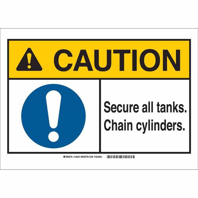 This is manufactured by Brady Corporation. The manufacturer part number is 145238. Label with a size of 10.00" l x 7.00" w (254.0mm x 177.8mm). The product is rohs3 compliant. It is assigned with possible HTSUS value of 3926.90.9985. It is shipped in bulk. It has a classic black, blue and yellow legend, white background colour. The product brady®, is a highly preferred choice for users. The product is made from highly stable and reliable polyester. In addition, it is reach unaffected. Its typical moisture sensitivity level is not applicable. A bespoke label is a caution. secure all tanks chain cylinders label. It has a long 4 weeks standard lead time. The product is designated with the ear99 code number