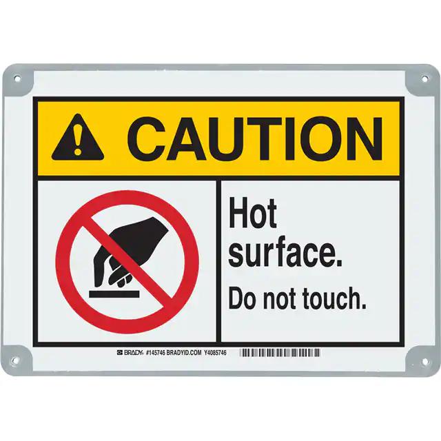 This is manufactured by Brady Corporation. The manufacturer part number is 145746. Label with a size of 10.00" l x 7.00" w (254.0mm x 177.8mm). The product is rohs3 compliant. It is assigned with possible HTSUS value of 3926.90.9985. It is shipped in bulk. It has a classic black, red and yellow legend, white background colour. The product brady®, is a highly preferred choice for users. The product is made from highly stable and reliable polypropylene. In addition, it is reach unaffected. Its typical moisture sensitivity level is not applicable. A bespoke label is a caution. hot surface. do not touch. label. It has a long 4 weeks standard lead time. The product is designated with the ear99 code number