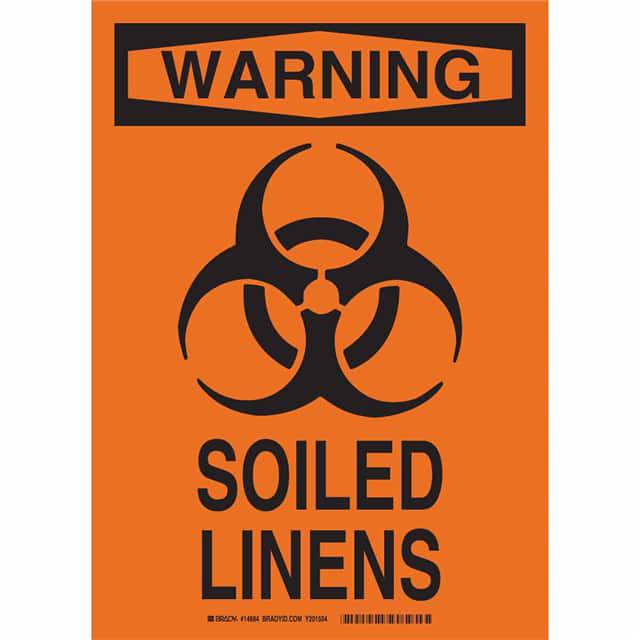 This is manufactured by Brady Corporation. The manufacturer part number is 14684. Label with a size of 14.00" l x 10.00" w (355.6mm x 254.0mm). The product is rohs3 compliant. It is assigned with possible HTSUS value of 3926.90.9985. It is shipped in bulk. It has a classic black legend, orange background colour. The product brady®, is a highly preferred choice for users. The product is made from highly stable and reliable polyester. In addition, it is reach unaffected. Its typical moisture sensitivity level is not applicable. A bespoke label is a warning. soiled linens label. It has a long 4 weeks standard lead time. The product is designated with the ear99 code number