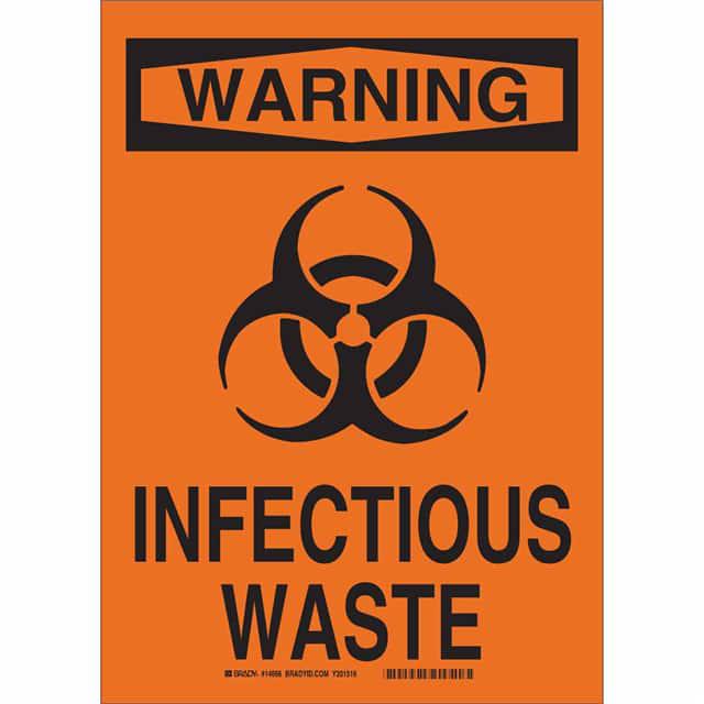 This is manufactured by Brady Corporation. The manufacturer part number is 14691. Label with a size of 10.00" l x 7.00" w (254.0mm x 177.8mm). The product is rohs3 compliant. It is assigned with possible HTSUS value of 8310.00.0000. It is shipped in bulk. It has a classic black legend, orange background colour. The product brady®, is a highly preferred choice for users. The product is made from highly stable and reliable aluminum. In addition, it is reach unaffected. Its typical moisture sensitivity level is not applicable. A bespoke label is a warning. infectious waste label. It has a long 4 weeks standard lead time. The product is designated with the ear99 code number