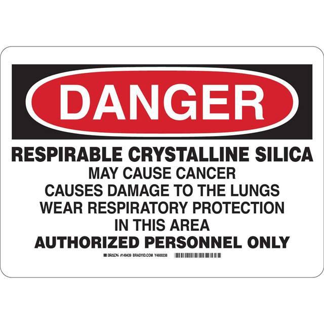 This is manufactured by Brady Corporation. The manufacturer part number is 149440. Label with a size of 10.00" l x 7.00" w (254.0mm x 177.8mm). The product is rohs3 compliant. It is assigned with possible HTSUS value of 3926.90.9985. It is shipped in bulk. It has a classic black and red legend, white background colour. The product brady®, is a highly preferred choice for users. The product is made from highly stable and reliable polyester. In addition, it is reach unaffected. Its typical moisture sensitivity level is not applicable. A bespoke label is a danger. respirable crystalline silica may cause cancer causes damage to lungs wear respiratory protection in this area authori… label. The product is suitable for use with danger. It has a long 4 weeks standard lead time. The product is designated with the ear99 code number
