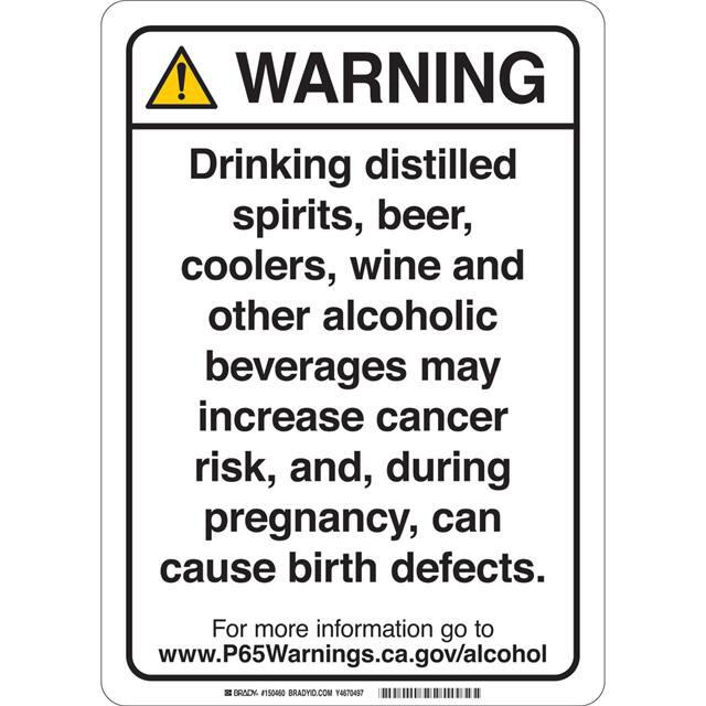 This is manufactured by Brady Corporation. The manufacturer part number is 150478. Label with a size of 10.00" l x 7.00" w (254.0mm x 177.8mm). The product is rohs3 compliant. It is assigned with possible HTSUS value of 3926.90.9985. It is shipped in bulk. It has a classic black legend, white background colour. The product brady®, is a highly preferred choice for users. The product is made from highly stable and reliable polyester. In addition, it is reach unaffected. Its typical moisture sensitivity level is not applicable. A bespoke label is a warning. drinking distilled spirits, beer, coolers, wine and other alcoholic beverages may increase cancer risk, and, during p… label. The product is suitable for use with warning. It has a long 4 weeks standard lead time. The product is designated with the ear99 code number