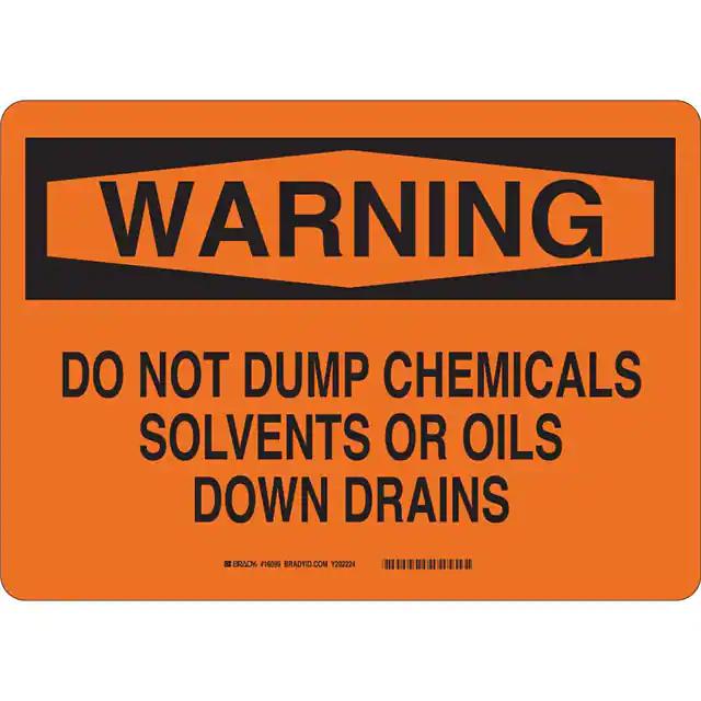 This is manufactured by Brady Corporation. The manufacturer part number is 16099. Label with a size of 14.00" l x 10.00" w (355.6mm x 254.0mm). It is assigned with possible HTSUS value of 3926.90.9985. It is shipped in bulk. It has a classic black legend, orange background colour. The product brady®, is a highly preferred choice for users. The product is made from highly stable and reliable polyethylene. In addition, it is reach unaffected. Its typical moisture sensitivity level is not applicable. A bespoke label is a warning. do not dump chemicals, solvents or oils down drains label. The product is suitable for use with warning. It has a long 4 weeks standard lead time. The product is designated with the ear99 code number