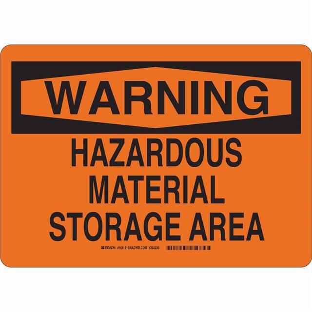 This is manufactured by Brady Corporation. The manufacturer part number is 16112. Label with a size of 14.00" l x 10.00" w (355.6mm x 254.0mm). It is assigned with possible HTSUS value of 3926.90.9985. It is shipped in bulk. It has a classic black legend, orange background colour. The product brady®, is a highly preferred choice for users. The product is made from highly stable and reliable polyethylene. In addition, it is reach unaffected. Its typical moisture sensitivity level is not applicable. A bespoke label is a warning. hazardous material storage area label. The product is suitable for use with warning. It has a long 4 weeks standard lead time. The product is designated with the ear99 code number