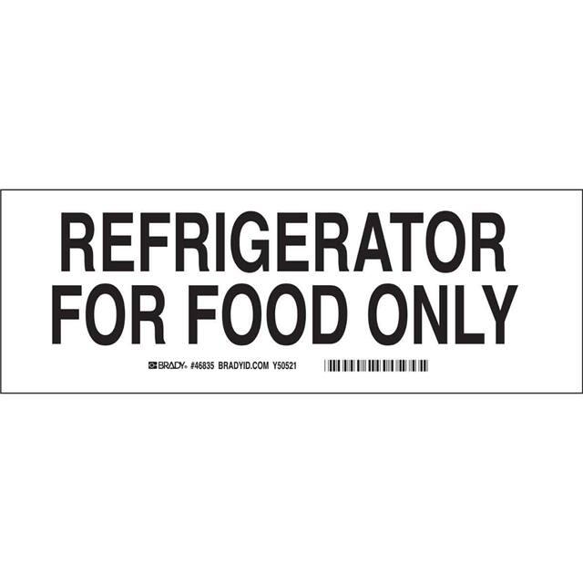 This is manufactured by Brady Corporation. The manufacturer part number is 20097JLS. Label with a size of 10.00" l x 3.50" w (254.0mm x 88.9mm). The product is rohs3 compliant. It is assigned with possible HTSUS value of 8310.00.0000. It is shipped in bulk. It has a classic black legend, white background colour. The product brady®, is a highly preferred choice for users. The product is made from highly stable and reliable aluminum. In addition, it is reach unaffected. Its typical moisture sensitivity level is not applicable. A bespoke label is a refrigerator for food only label. The product is suitable for use with warning. It has a long 4 weeks standard lead time. The product is designated with the ear99 code number