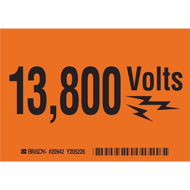 This is manufactured by Brady Corporation. The manufacturer part number is 20942. Label with a size of 5.00" l x 3.50" w (127.0mm x 88.9mm). The product is rohs3 compliant. It is assigned with possible HTSUS value of 3926.90.9985. It is shipped in bulk. It has a classic black legend, orange background colour. The product brady®, is a highly preferred choice for users. The product is made from highly stable and reliable polyester. In addition, it is reach unaffected. Its typical moisture sensitivity level is not applicable. A bespoke label is a 13,800 volts label. The product is suitable for use with warning. It has a long 4 weeks standard lead time. The product is designated with the ear99 code number