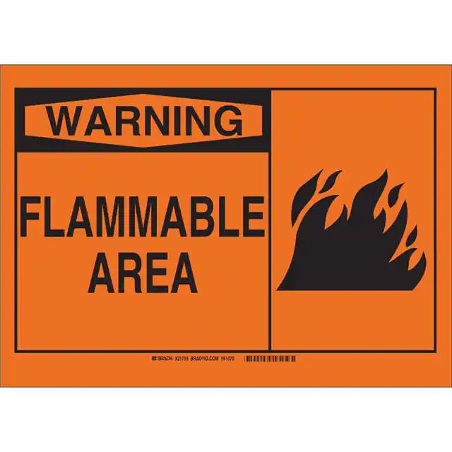 This is manufactured by Brady Corporation. The manufacturer part number is 21719. Label with a size of 10.00" l x 7.00" w (254.0mm x 177.8mm). The product is rohs3 compliant. It is assigned with possible HTSUS value of 3926.90.9985. It is shipped in bulk. It has a classic black legend, orange background colour. The product brady®, is a highly preferred choice for users. The product is made from highly stable and reliable polyester. In addition, it is reach unaffected. Its typical moisture sensitivity level is not applicable. A bespoke label is a warning. flammable area label. The product is suitable for use with warning. It has a long 4 weeks standard lead time. The product is designated with the ear99 code number