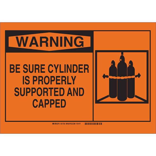 This is manufactured by Brady Corporation. The manufacturer part number is 21720. Label with a size of 10.00" l x 7.00" w (254.0mm x 177.8mm). The product is rohs3 compliant. It is assigned with possible HTSUS value of 3926.90.9985. It is shipped in bulk. It has a classic black legend, orange background colour. The product brady®, is a highly preferred choice for users. The product is made from highly stable and reliable polyester. In addition, it is reach unaffected. Its typical moisture sensitivity level is not applicable. A bespoke label is a warning. be sure cylinder is properly supported and capped label. The product is suitable for use with warning. It has a long 4 weeks standard lead time. The product is designated with the ear99 code number