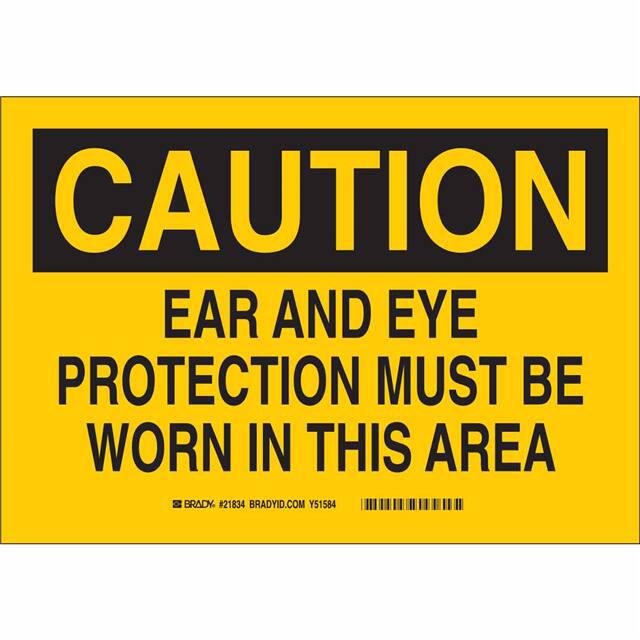 This is manufactured by Brady Corporation. The manufacturer part number is 21834. Label with a size of 10.00" l x 7.00" w (254.0mm x 177.8mm). The product is rohs3 compliant. It is assigned with possible HTSUS value of 3926.90.9985. It is shipped in bulk. It has a classic black legend, yellow background colour. The product brady®, is a highly preferred choice for users. The product is made from highly stable and reliable polyester. In addition, it is reach unaffected. Its typical moisture sensitivity level is not applicable. A bespoke label is a caution. ear and eye protection must be worn in this area label. The product is suitable for use with caution. It has a long 4 weeks standard lead time. The product is designated with the ear99 code number