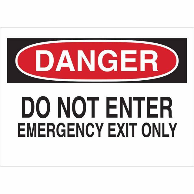 This is manufactured by Brady Corporation. The manufacturer part number is 22084. Label with a size of 14.00" l x 10.00" w (355.6mm x 254.0mm). The product is rohs3 compliant. It is assigned with possible HTSUS value of 3926.90.9985. It is shipped in bulk. It has a classic black and red legend, white background colour. The product brady®, is a highly preferred choice for users. The product is made from highly stable and reliable polyester. In addition, it is reach unaffected. Its typical moisture sensitivity level is not applicable. A bespoke label is a danger. do not enter emergency exit only label. The product is suitable for use with danger. It has a long 4 weeks standard lead time. The product is designated with the ear99 code number