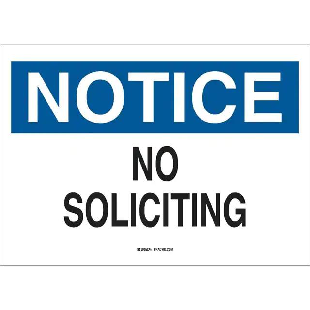 This is manufactured by Brady Corporation. The manufacturer part number is 22161. Label with a size of 10.00" l x 7.00" w (254.0mm x 177.8mm). The product is rohs3 compliant. It is assigned with possible HTSUS value of 3926.90.9985. It is shipped in bulk. It has a classic black and blue legend, white background colour. The product brady®, is a highly preferred choice for users. The product is made from highly stable and reliable polyester. In addition, it is reach unaffected. Its typical moisture sensitivity level is not applicable. A bespoke label is a notice. no soliciting label. It has a long 4 weeks standard lead time. The product is designated with the ear99 code number