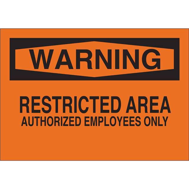 This is manufactured by Brady Corporation. The manufacturer part number is 22203. Label with a size of 10.00" l x 7.00" w (254.0mm x 177.8mm). The product is rohs3 compliant. It is assigned with possible HTSUS value of 3926.90.9985. It is shipped in bulk. It has a classic black legend, orange background colour. The product brady®, is a highly preferred choice for users. The product is made from highly stable and reliable polyester. In addition, it is reach unaffected. Its typical moisture sensitivity level is not applicable. A bespoke label is a warning. restricted area authorized employees only label. The product is suitable for use with warning. It has a long 4 weeks standard lead time. The product is designated with the ear99 code number