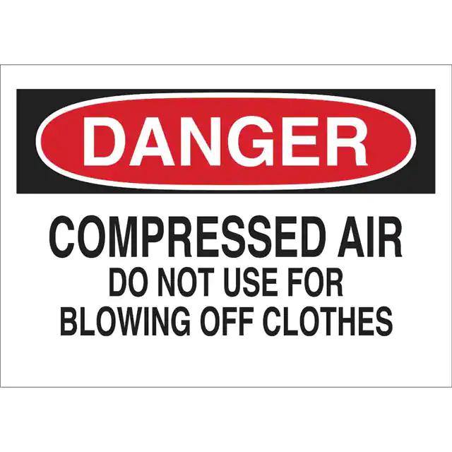 This is manufactured by Brady Corporation. The manufacturer part number is 22320. Label with a size of 14.00" l x 10.00" w (355.6mm x 254.0mm). The product is rohs3 compliant. It is assigned with possible HTSUS value of 3926.90.9985. It is shipped in bulk. It has a classic black and red legend, white background colour. The product brady®, is a highly preferred choice for users. The product is made from highly stable and reliable polyester. In addition, it is reach unaffected. Its typical moisture sensitivity level is not applicable. A bespoke label is a danger. compressed air do not use for blowing off clothes label. The product is suitable for use with danger. It has a long 4 weeks standard lead time. The product is designated with the ear99 code number
