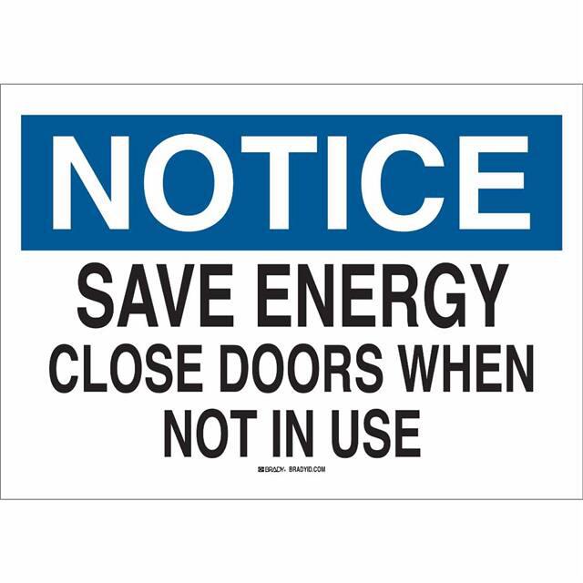 This is manufactured by Brady Corporation. The manufacturer part number is 22445. Label with a size of 10.00" l x 7.00" w (254.0mm x 177.8mm). The product is rohs3 compliant. It is assigned with possible HTSUS value of 3926.90.9985. It is shipped in bulk. It has a classic black and blue legend, white background colour. The product brady®, is a highly preferred choice for users. The product is made from highly stable and reliable polyester. In addition, it is reach unaffected. Its typical moisture sensitivity level is not applicable. A bespoke label is a notice. save energy close doors when not in use label. The product is suitable for use with notice. It has a long 4 weeks standard lead time. The product is designated with the ear99 code number