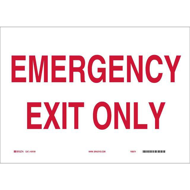 This is manufactured by Brady Corporation. The manufacturer part number is 22482. Label with a size of 14.00" l x 10.00" w (355.6mm x 254.0mm). The product is rohs3 compliant. It is assigned with possible HTSUS value of 3926.90.9985. It is shipped in bulk. It has a classic red legend, white background colour. The product brady®, is a highly preferred choice for users. The product is made from highly stable and reliable polyester. In addition, it is reach unaffected. Its typical moisture sensitivity level is not applicable. A bespoke label is a emergency exit only label. The product is suitable for use with emergency. It has a long 4 weeks standard lead time. The product is designated with the ear99 code number