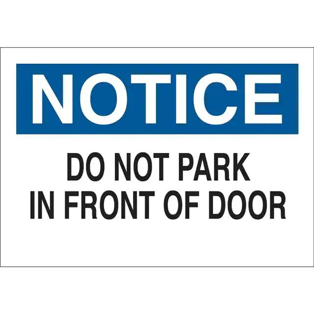 This is manufactured by Brady Corporation. The manufacturer part number is 22532. Label with a size of 14.00" l x 10.00" w (355.6mm x 254.0mm). The product is rohs3 compliant. It is assigned with possible HTSUS value of 3926.90.9985. It is shipped in bulk. It has a classic black and blue legend, white background colour. The product brady®, is a highly preferred choice for users. The product is made from highly stable and reliable polyester. In addition, it is reach unaffected. Its typical moisture sensitivity level is not applicable. A bespoke label is a notice. do not park in front of door label. The product is suitable for use with notice. It has a long 4 weeks standard lead time. The product is designated with the ear99 code number