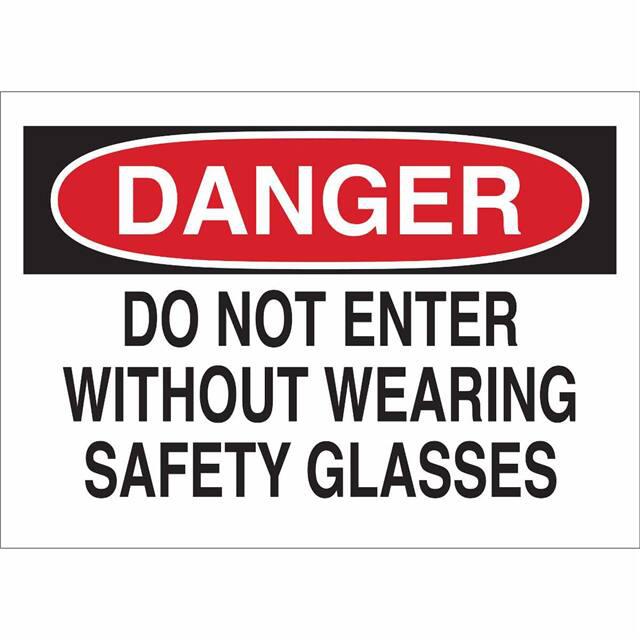 This is manufactured by Brady Corporation. The manufacturer part number is 22605. Label with a size of 14.00" l x 10.00" w (355.6mm x 254.0mm). The product is rohs3 compliant. It is assigned with possible HTSUS value of 3926.90.9985. It is shipped in bulk. It has a classic black and red legend, white background colour. The product brady®, is a highly preferred choice for users. The product is made from highly stable and reliable polyester. In addition, it is reach unaffected. Its typical moisture sensitivity level is not applicable. A bespoke label is a danger. do not enter without wearing safety glasses label. It has a long 4 weeks standard lead time. The product is designated with the ear99 code number