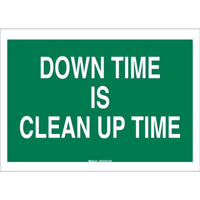 This is manufactured by Brady Corporation. The manufacturer part number is 22834. Label with a size of 10.00" l x 7.00" w (254.0mm x 177.8mm). The product is rohs3 compliant. It is assigned with possible HTSUS value of 3926.90.9985. It is shipped in bulk. It has a classic white legend, green background colour. The product brady®, is a highly preferred choice for users. The product is made from highly stable and reliable polyester. In addition, it is reach unaffected. Its typical moisture sensitivity level is not applicable. A bespoke label is a down time is clean up time label. The product is suitable for use with notice. It has a long 4 weeks standard lead time. The product is designated with the ear99 code number