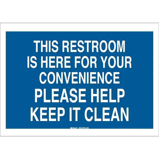 This is manufactured by Brady Corporation. The manufacturer part number is 22858. Label with a size of 10.00" l x 7.00" w (254.0mm x 177.8mm). The product is rohs3 compliant. It is assigned with possible HTSUS value of 3926.90.9985. It is shipped in bulk. It has a classic white legend, blue background colour. The product brady®, is a highly preferred choice for users. The product is made from highly stable and reliable polyester. In addition, it is reach unaffected. Its typical moisture sensitivity level is not applicable. A bespoke label is a this restroom is here for your convenience please help keep it clean label. The product is suitable for use with warning. It has a long 4 weeks standard lead time. The product is designated with the ear99 code number