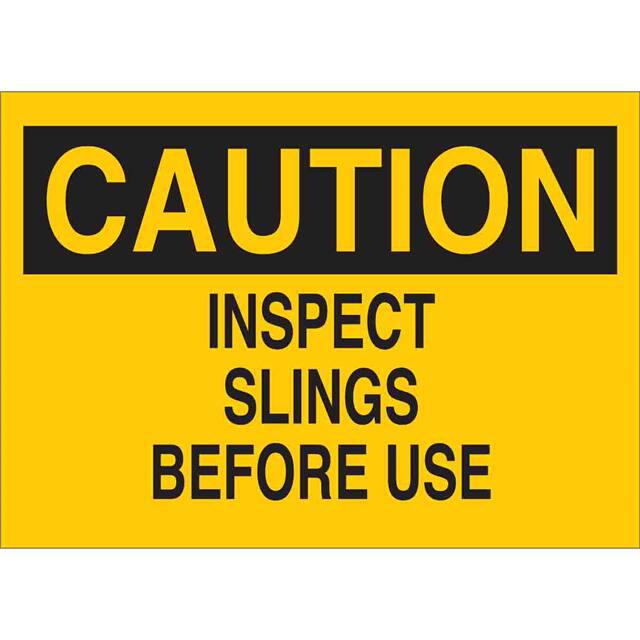 This is manufactured by Brady Corporation. The manufacturer part number is 22902. Label with a size of 14.00" l x 10.00" w (355.6mm x 254.0mm). The product is rohs3 compliant. It is assigned with possible HTSUS value of 3926.90.9985. It is shipped in bulk. It has a classic black legend, yellow background colour. The product brady®, is a highly preferred choice for users. The product is made from highly stable and reliable polyester. In addition, it is reach unaffected. Its typical moisture sensitivity level is not applicable. A bespoke label is a caution. inspect slings before use label. The product is suitable for use with caution. It has a long 4 weeks standard lead time. The product is designated with the ear99 code number