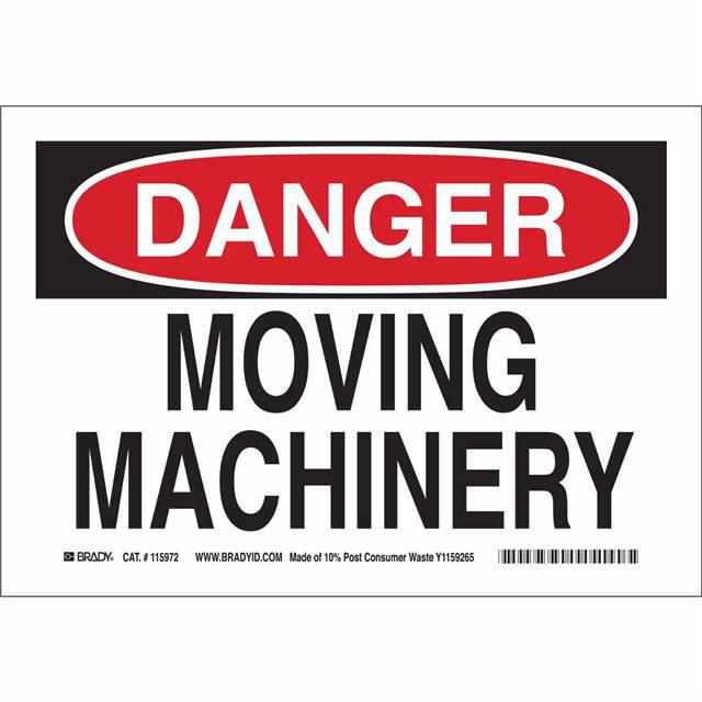 This is manufactured by Brady Corporation. The manufacturer part number is 23019. Label with a size of 10.00" l x 7.00" w (254.0mm x 177.8mm). The product is rohs3 compliant. It is assigned with possible HTSUS value of 3926.90.9985. It is shipped in bulk. It has a classic black and red legend, white background colour. The product brady®, is a highly preferred choice for users. The product is made from highly stable and reliable polyester. In addition, it is reach unaffected. Its typical moisture sensitivity level is not applicable. A bespoke label is a danger. moving machinery label. The product is suitable for use with warning. It has a long 4 weeks standard lead time. The product is designated with the ear99 code number