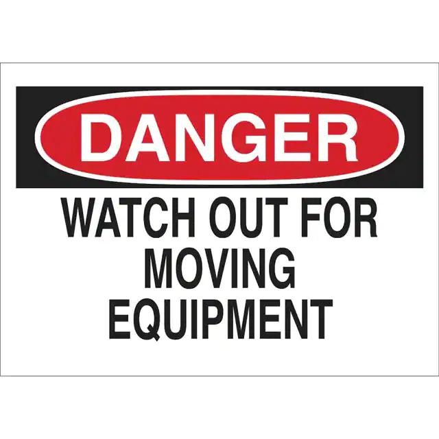 This is manufactured by Brady Corporation. The manufacturer part number is 23047. Label with a size of 10.00" l x 7.00" w (254.0mm x 177.8mm). The product is rohs3 compliant. It is assigned with possible HTSUS value of 3926.90.9985. It is shipped in bulk. It has a classic black and red legend, white background colour. The product brady®, is a highly preferred choice for users. The product is made from highly stable and reliable polyester. In addition, it is reach unaffected. Its typical moisture sensitivity level is not applicable. A bespoke label is a danger. watch out for moving equipment label. It has a long 4 weeks standard lead time. The product is designated with the ear99 code number