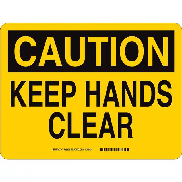 This is manufactured by Brady Corporation. The manufacturer part number is 23229. Label with a size of 12.00" l x 9.00" w (304.8mm x 228.6mm). It is assigned with possible HTSUS value of 3926.90.9985. It is shipped in bulk. It has a classic black legend, yellow background colour. The product brady®, is a highly preferred choice for users. The product is made from highly stable and reliable polyethylene. In addition, it is reach unaffected. Its typical moisture sensitivity level is not applicable. A bespoke label is a caution. keep hands clear label. The product is suitable for use with caution. It has a long 4 weeks standard lead time. The product is designated with the ear99 code number