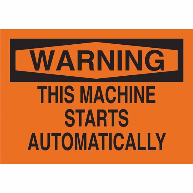 This is manufactured by Brady Corporation. The manufacturer part number is 25039. Label with a size of 10.00" l x 7.00" w (254.0mm x 177.8mm). The product is rohs3 compliant. It is assigned with possible HTSUS value of 3926.90.9985. It is shipped in bulk. It has a classic black legend, orange background colour. The product brady®, is a highly preferred choice for users. The product is made from highly stable and reliable polyester. In addition, it is reach unaffected. Its typical moisture sensitivity level is not applicable. A bespoke label is a warning. this machine starts automatically label. The product is suitable for use with warning. It has a long 4 weeks standard lead time. The product is designated with the ear99 code number