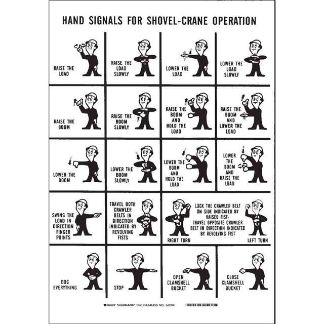 This is manufactured by Brady Corporation. The manufacturer part number is 25048. Label with a size of 10.00" l x 7.00" w (254.0mm x 177.8mm). The product is rohs3 compliant. It is assigned with possible HTSUS value of 3926.90.9985. It is shipped in bulk. It has a classic black legend, white background colour. The product brady®, is a highly preferred choice for users. The product is made from highly stable and reliable polyester. In addition, it is reach unaffected. Its typical moisture sensitivity level is not applicable. A bespoke label is a hand signals for shovel-crane operation label. It has a long 4 weeks standard lead time. The product is designated with the ear99 code number
