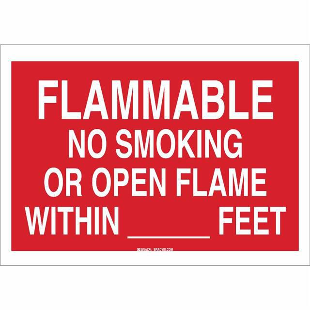 This is manufactured by Brady Corporation. The manufacturer part number is 25109. Label with a size of 10.00" l x 7.00" w (254.0mm x 177.8mm). The product is rohs3 compliant. It is assigned with possible HTSUS value of 3926.90.9985. It is shipped in bulk. It has a classic white legend, red background colour. The product brady®, is a highly preferred choice for users. The product is made from highly stable and reliable polyester. In addition, it is reach unaffected. Its typical moisture sensitivity level is not applicable. A bespoke label is a flammable. no smoking or open flame within __ feet label. The product is suitable for use with warning. It has a long 4 weeks standard lead time. The product is designated with the ear99 code number