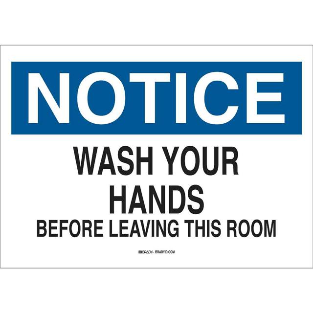 This is manufactured by Brady Corporation. The manufacturer part number is 25154. Label with a size of 14.00" l x 10.00" w (355.6mm x 254.0mm). The product is rohs3 compliant. It is assigned with possible HTSUS value of 3926.90.9985. It is shipped in bulk. It has a classic black and blue legend, white background colour. The product brady®, is a highly preferred choice for users. The product is made from highly stable and reliable polyester. In addition, it is reach unaffected. Its typical moisture sensitivity level is not applicable. A bespoke label is a notice. wash your hands before leaving this room label. The product is suitable for use with notice. It has a long 4 weeks standard lead time. The product is designated with the ear99 code number
