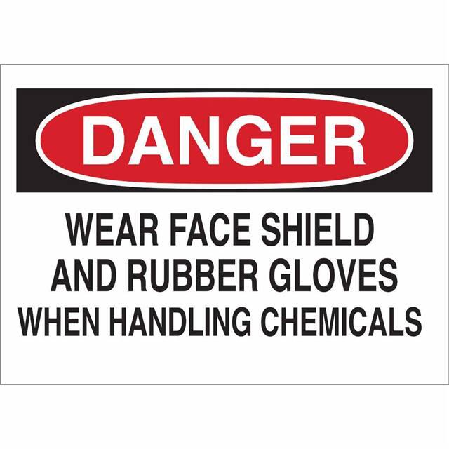 This is manufactured by Brady Corporation. The manufacturer part number is 25222. Label with a size of 10.00" l x 7.00" w (254.0mm x 177.8mm). The product is rohs3 compliant. It is assigned with possible HTSUS value of 3926.90.9985. It is shipped in bulk. It has a classic black and red legend, white background colour. The product brady®, is a highly preferred choice for users. The product is made from highly stable and reliable polyester. In addition, it is reach unaffected. Its typical moisture sensitivity level is not applicable. A bespoke label is a danger. wear face shield and rubber gloves when handling chemicals label. The product is suitable for use with danger. It has a long 4 weeks standard lead time. The product is designated with the ear99 code number