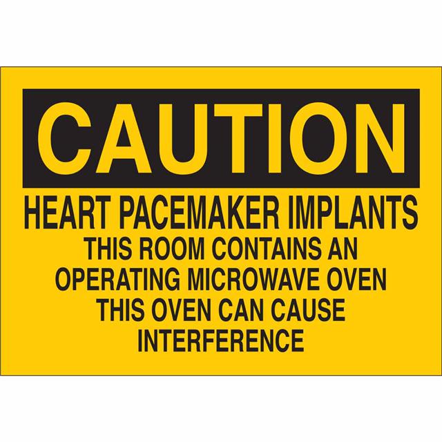 This is manufactured by Brady Corporation. The manufacturer part number is 25255. Label with a size of 14.00" l x 10.00" w (355.6mm x 254.0mm). The product is rohs3 compliant. It is assigned with possible HTSUS value of 3926.90.9985. It is shipped in bulk. It has a classic black legend, yellow background colour. The product brady®, is a highly preferred choice for users. The product is made from highly stable and reliable polyester. In addition, it is reach unaffected. Its typical moisture sensitivity level is not applicable. A bespoke label is a caution. heart pacemaker implants this room contains an operating microwave oven this oven can cause interference label. The product is suitable for use with caution. It has a long 4 weeks standard lead time. The product is designated with the ear99 code number