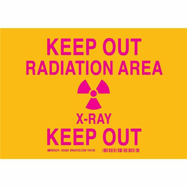 This is manufactured by Brady Corporation. The manufacturer part number is 25289. Label with a size of 10.00" l x 7.00" w (254.0mm x 177.8mm). The product is rohs3 compliant. It is assigned with possible HTSUS value of 3926.90.9985. It is shipped in bulk. It has a classic magenta legend, yellow background colour. The product brady®, is a highly preferred choice for users. The product is made from highly stable and reliable polyester. In addition, it is reach unaffected. Its typical moisture sensitivity level is not applicable. A bespoke label is a keep out radiation area x-ray keep out label. The product is suitable for use with warning. It has a long 4 weeks standard lead time. The product is designated with the ear99 code number
