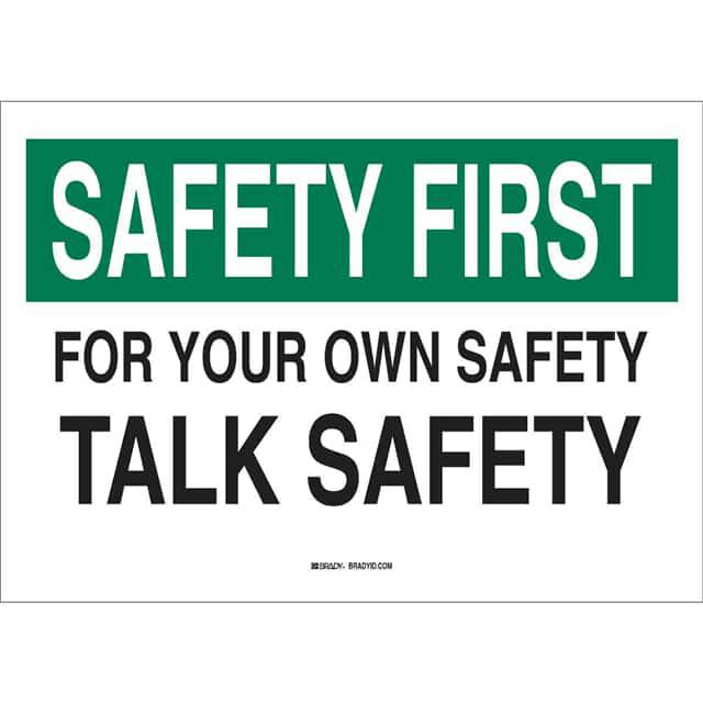 This is manufactured by Brady Corporation. The manufacturer part number is 25313. Label with a size of 10.00" l x 7.00" w (254.0mm x 177.8mm). The product is rohs3 compliant. It is assigned with possible HTSUS value of 3926.90.9985. It is shipped in bulk. It has a classic black and green legend, white background colour. The product brady®, is a highly preferred choice for users. The product is made from highly stable and reliable polyester. In addition, it is reach unaffected. Its typical moisture sensitivity level is not applicable. A bespoke label is a safety first. for your own safety talk safety label. It has a long 4 weeks standard lead time. The product is designated with the ear99 code number