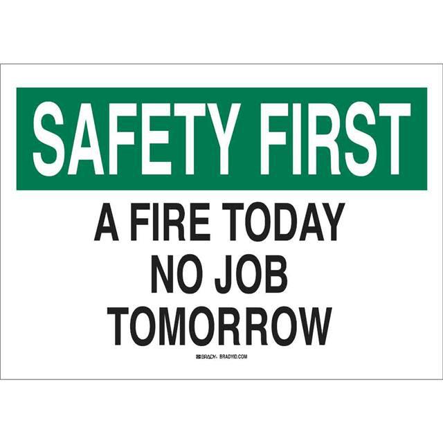 This is manufactured by Brady Corporation. The manufacturer part number is 25689. Label with a size of 14.00" l x 10.00" w (355.6mm x 254.0mm). The product is rohs3 compliant. It is assigned with possible HTSUS value of 3926.90.9985. It is shipped in bulk. It has a classic black and green legend, white background colour. The product brady®, is a highly preferred choice for users. The product is made from highly stable and reliable polyester. In addition, it is reach unaffected. Its typical moisture sensitivity level is not applicable. A bespoke label is a safety first. a fire today no job tomorrow label. The product is suitable for use with safety. It has a long 4 weeks standard lead time. The product is designated with the ear99 code number