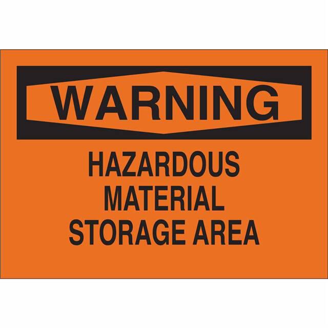 This is manufactured by Brady Corporation. The manufacturer part number is 25738. Label with a size of 10.00" l x 7.00" w (254.0mm x 177.8mm). The product is rohs3 compliant. It is assigned with possible HTSUS value of 3926.90.9985. It is shipped in bulk. It has a classic black legend, orange background colour. The product brady®, is a highly preferred choice for users. The product is made from highly stable and reliable polyester. In addition, it is reach unaffected. Its typical moisture sensitivity level is not applicable. A bespoke label is a warning. hazardous material storage area label. The product is suitable for use with warning. It has a long 4 weeks standard lead time. The product is designated with the ear99 code number